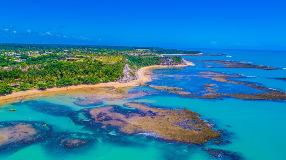 Localizada entre Porto Seguro e Santa Cruz Cabrália, Coroa Vermelha é um dos lugares mais especiais da região — tanto pela sua importância histórica quanto pela sua beleza natural. Foi aqui que, em 22 de abril de 1500, os portugueses desembarcaram pela primeira vez no Brasil e celebraram a primeira missa. Mas muito além do ponto de partida da nossa história, Coroa Vermelha hoje é um refúgio de tranquilidade, cultura viva e paisagens de tirar o fôlego. Quem se hospeda em Coroa Vermelha encontra o equilíbrio perfeito entre conforto, beleza e praticidade. A praia é famosa por suas águas mornas e calmas, protegidas por arrecifes, que formam verdadeiras piscinas naturais na maré baixa — ideal para famílias com crianças, casais ou idosos que buscam paz e sossego. Além disso, Coroa Vermelha tem uma ótima estrutura de quiosques e barracas à beira-mar, muitas delas servindo moquecas, frutos do mar frescos, petiscos e drinks tropicais — tudo com aquele atendimento baiano caloroso.